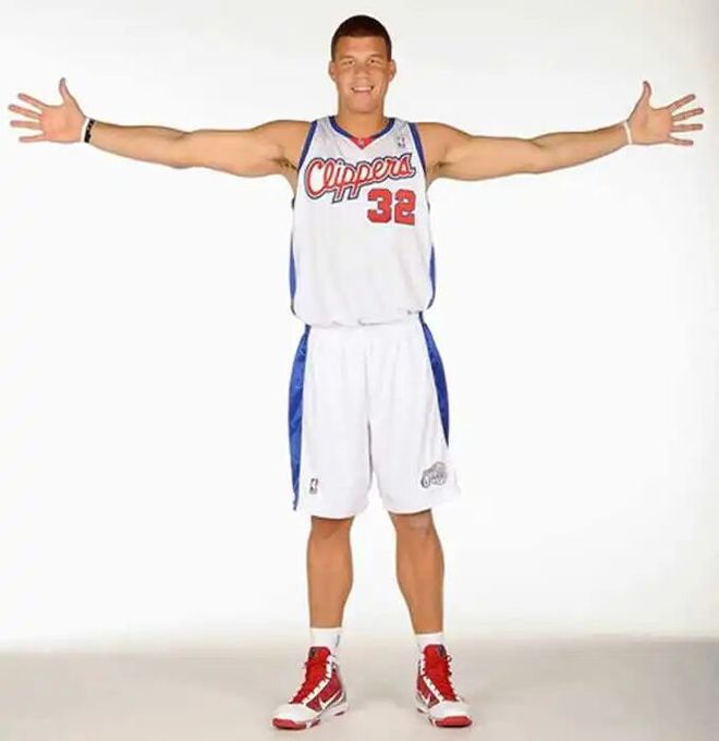 这也是为什么格里芬一直被诟病臂展不够了,一个勉强能当小前身高的球员臂展和他这个大前摸高相同(虽然莱昂拉德的臂展的确是惊人),