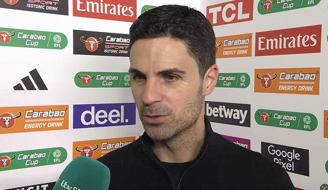 英联杯1/4决赛,阿森纳通过点球大战淘汰水晶宫,赛后,枪手主帅阿尔特塔接受了ITV的采访。