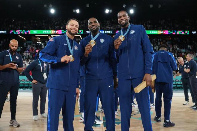 2024年巴黎奥运会,他们与库里联手助美国队夺金,实现了一代球迷心中“詹杜库”同队的终极幻想。