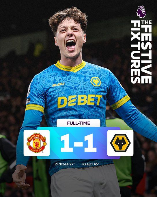 北京时间12月31日04:15,英超联赛第19轮,曼彻斯特联坐镇主场迎战狼队。上半场齐尔克泽首开纪录+头球乌龙助攻,克雷伊奇扳平。海文抢断反击,舍什科头球中柱。半场结束双方1-1战平。下半场舍什科头球失良机,拉门斯两连扑救险,多尔古进球越位。最终曼联主场1-1战平狼队,狼队终结各赛事12连败,曼联4轮仅1胜+先赛积30分仍居第6。